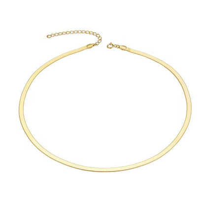 Elevate your style with our Essential Flat Chain Necklace, featuring a flat snake chain and clasp closure. Available in a gold or silver finish, this slinky minimalist chain will make any outfit.